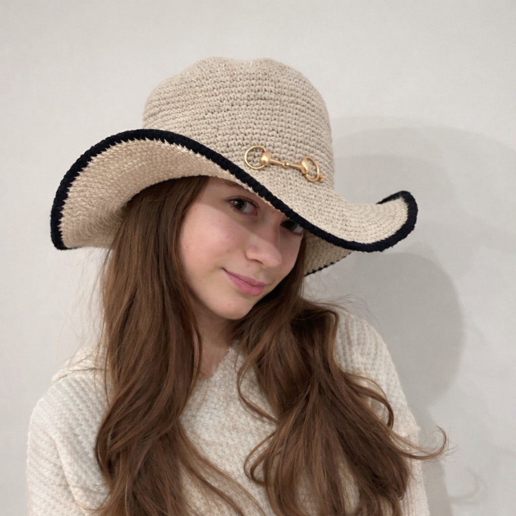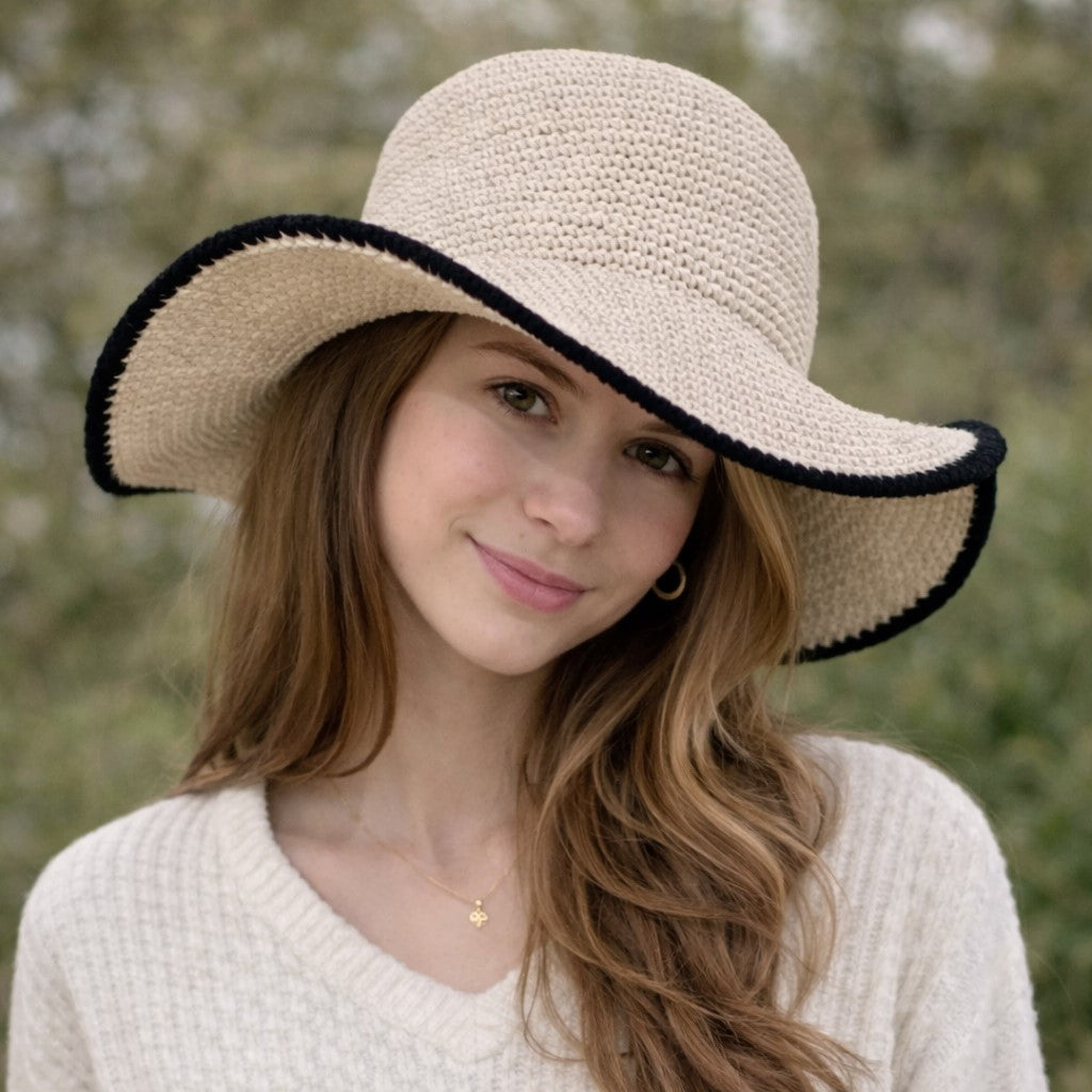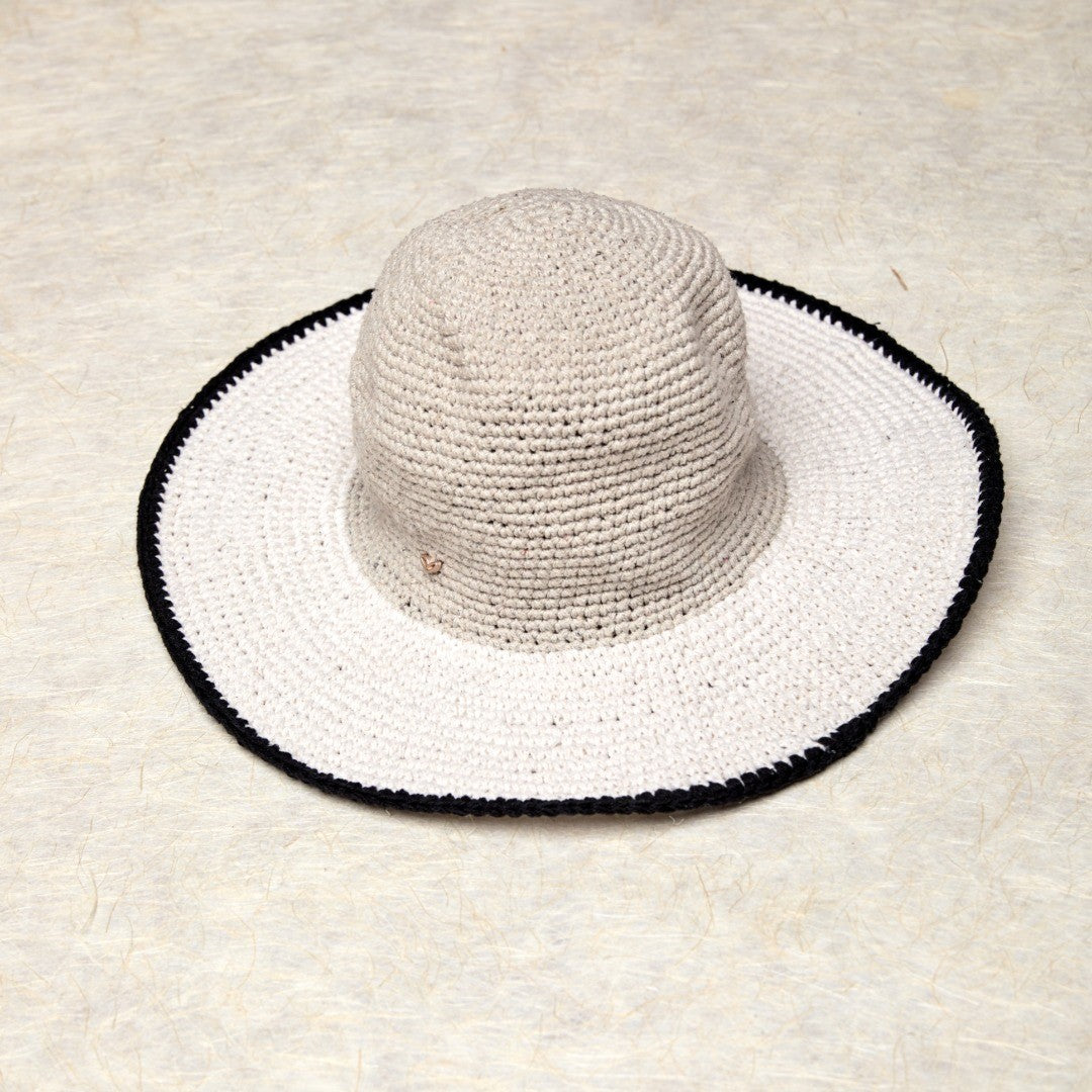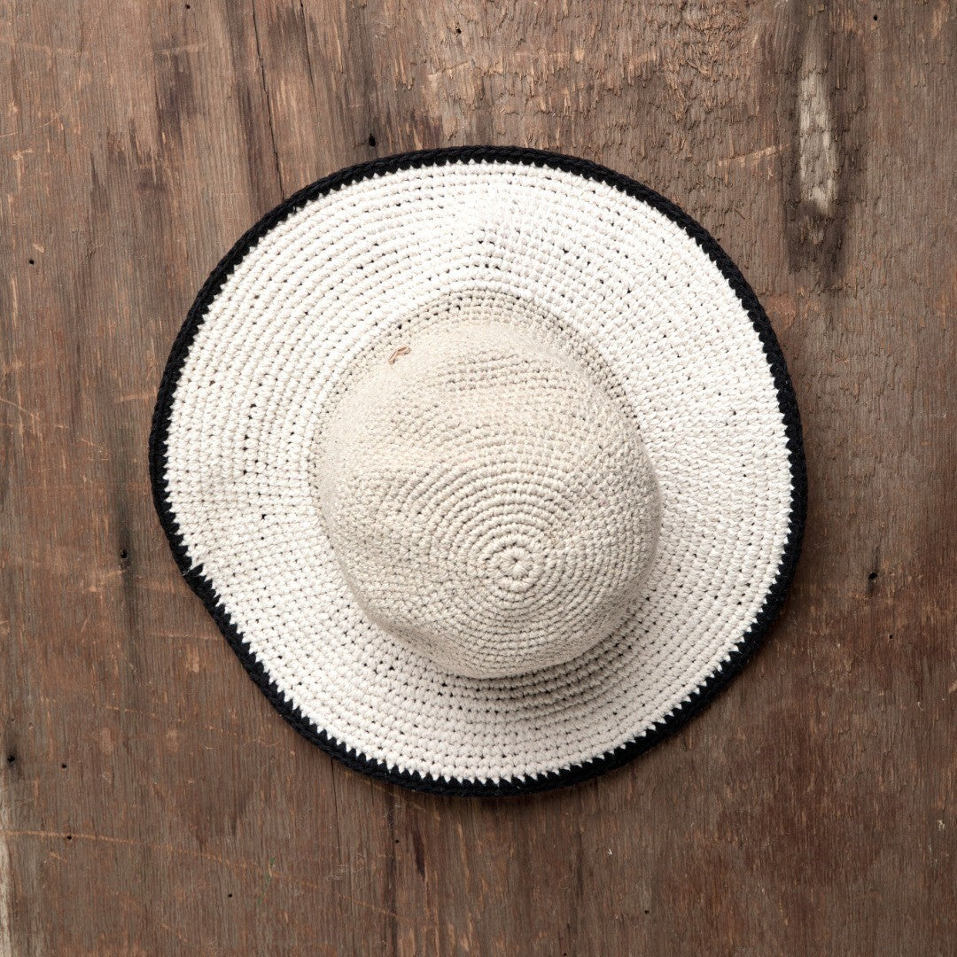 Hand-crocheted cotton sun hats, finished with signature embroidery for comfort, character, and everyday sun protection.